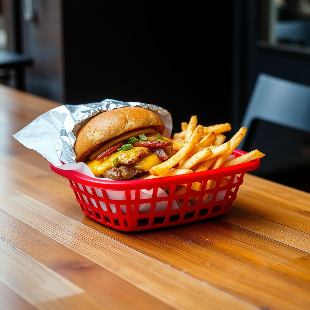 Crinkle cuts, cheese sauce, bacon rain, jalapeños.